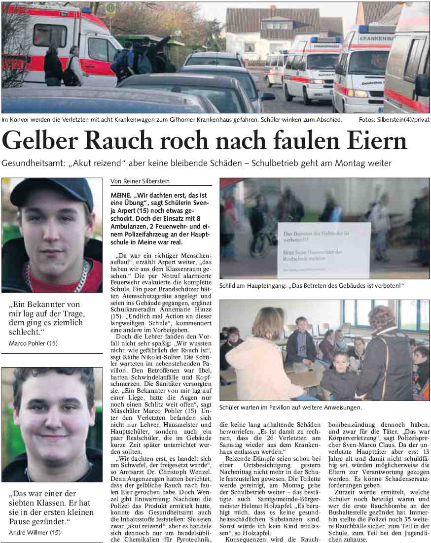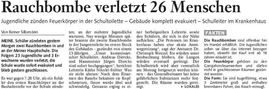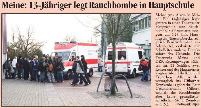 Meine: 13-Jähriger legt Rauchbombe in HS (Titelseite) |