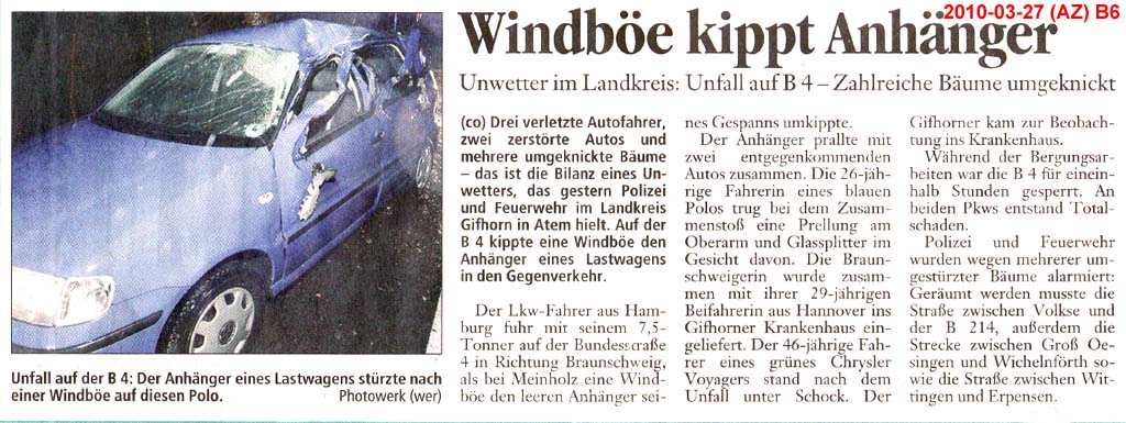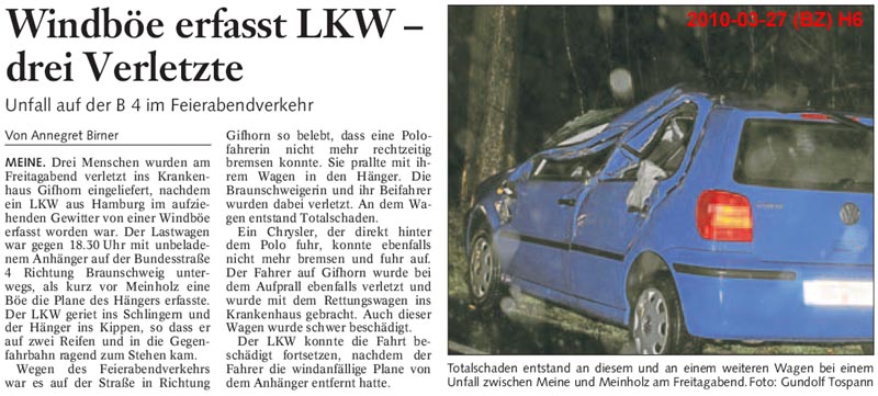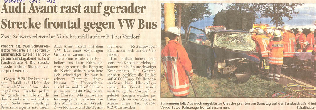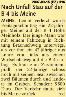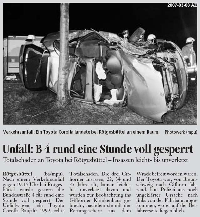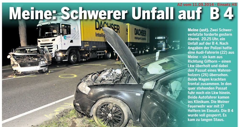 Unfall: B4 rund eine Stunde voll gesperrt |