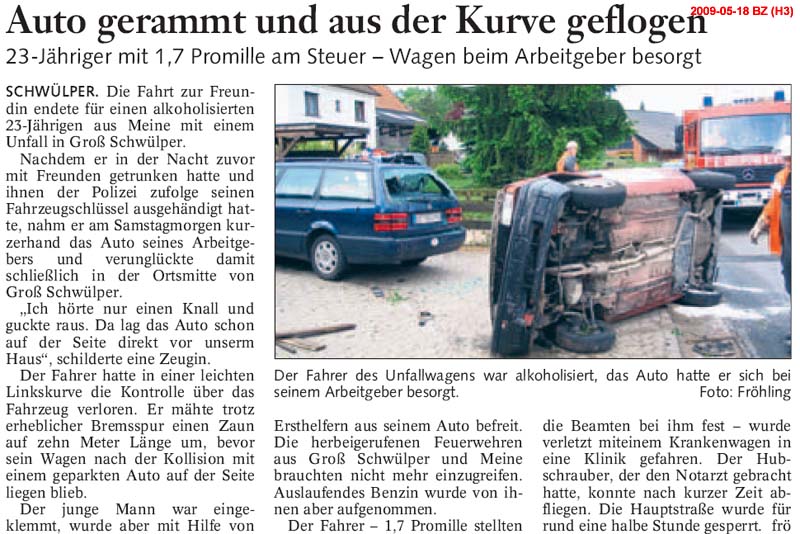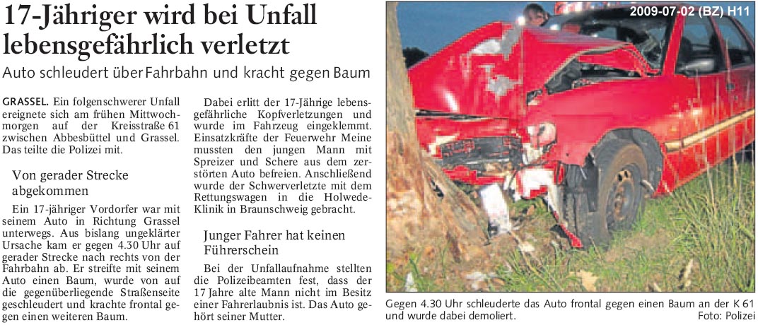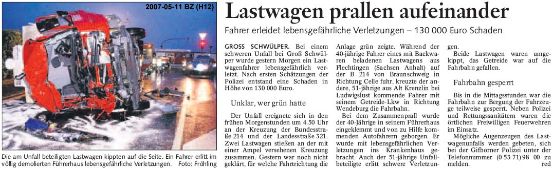 Schwülper: 40-Jähriger in Lebensgefahr (Titelseite) |