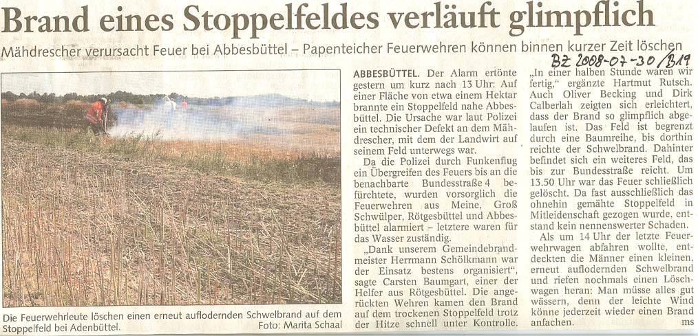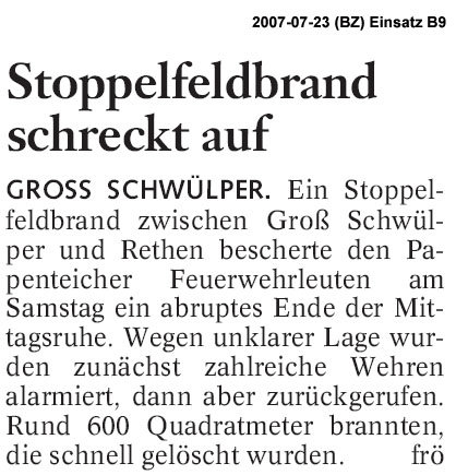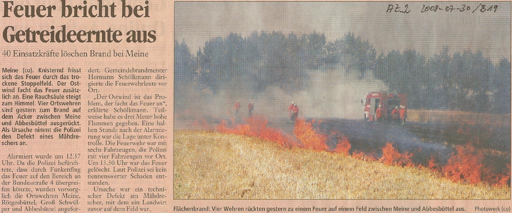 Abbesbüttel: Wehr löscht Flächenbrand |