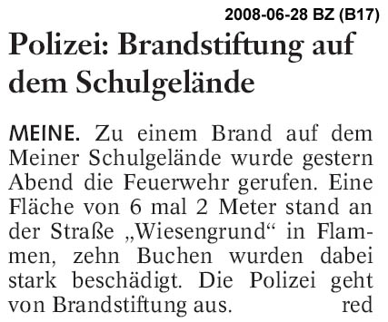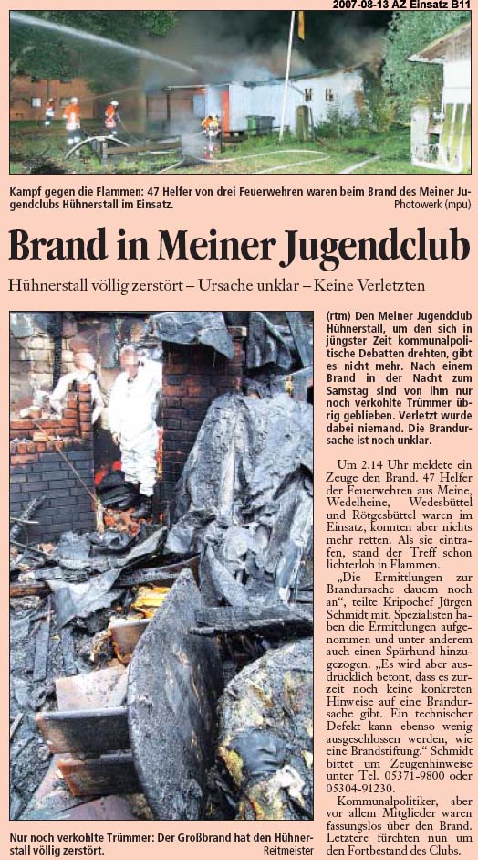 Meiner Jugendclub völlig ausgebrannt (Titelseite) |