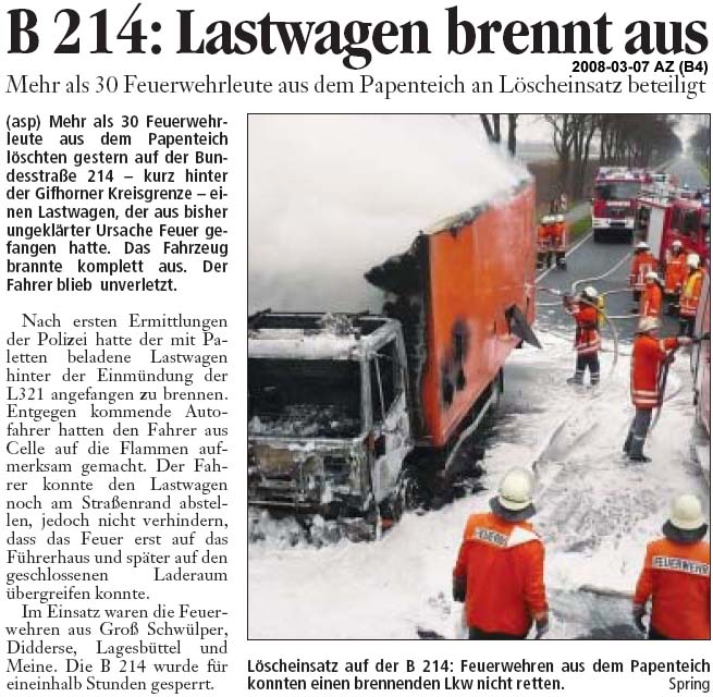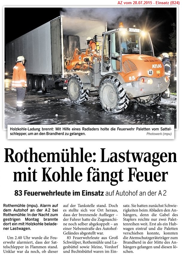 Rothemühle: Lastwagen mit Kohle fängt Feuer |