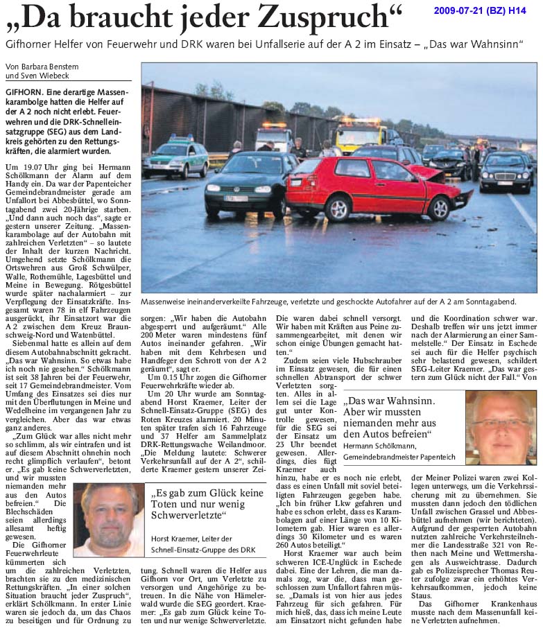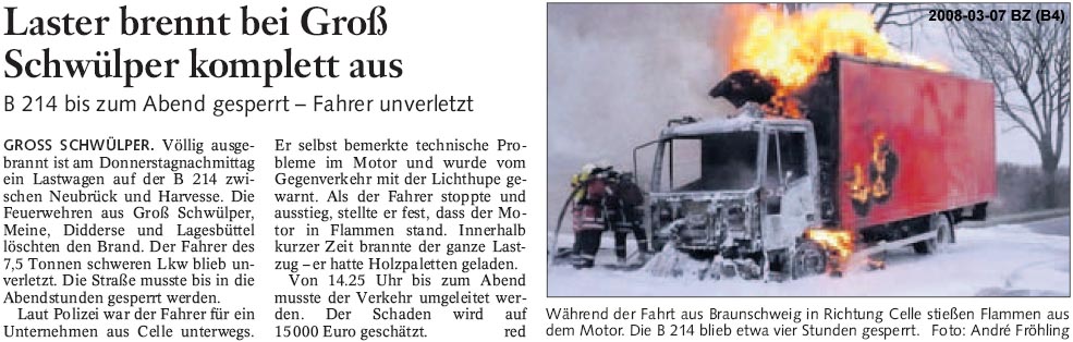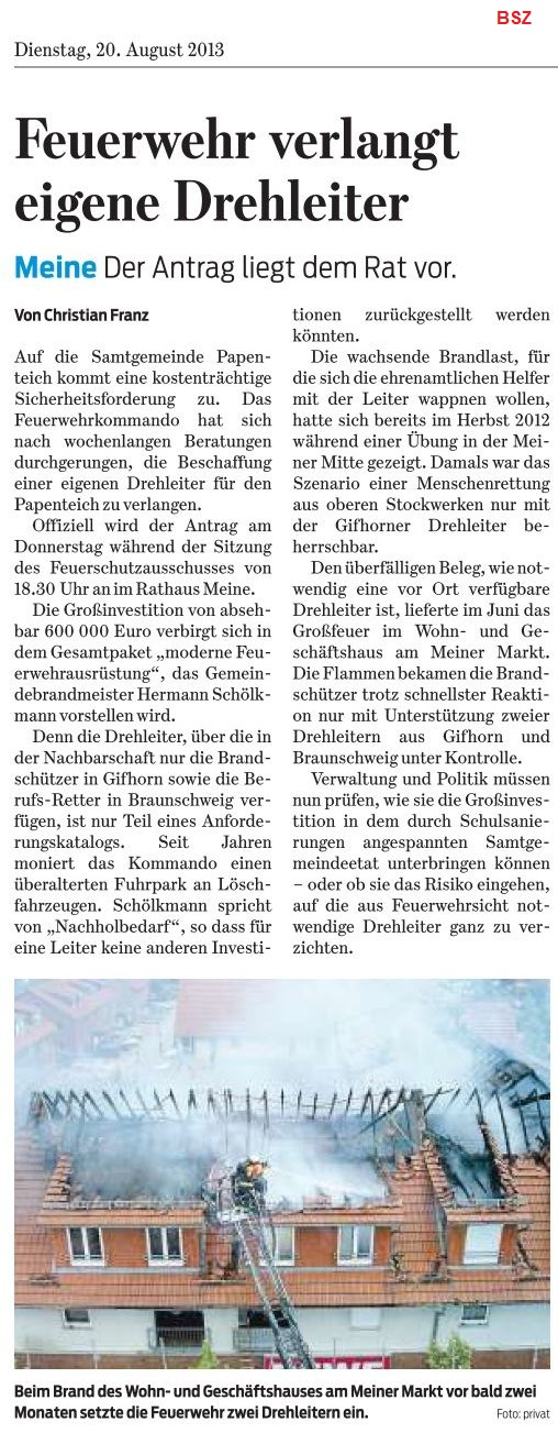 BZ - Braunschweiger Zeitung; FwM - Feuerwehr Magazin; PW - Pressewart; Pol