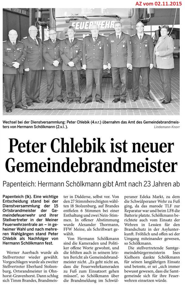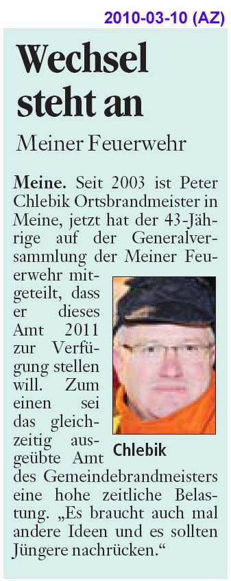 Peter Chlebik ist neuer Gemeindebrandmeister |