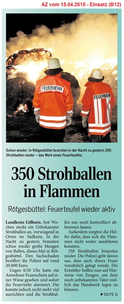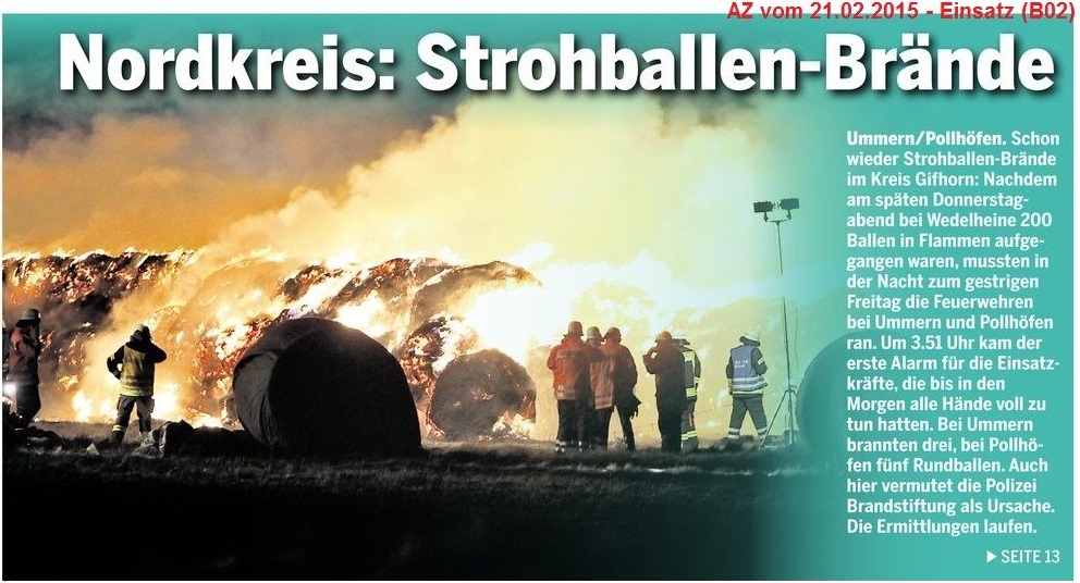 Schon wieder: Feuerteufel zündet Strohballen an (Bericht) |