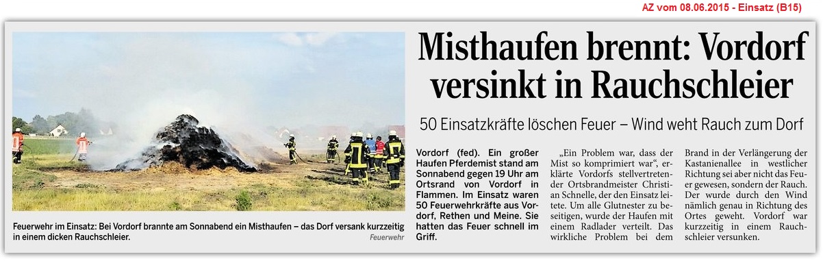 Misthaufen brennt: Vordorf versinkt in Rauchschleier |