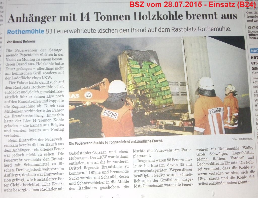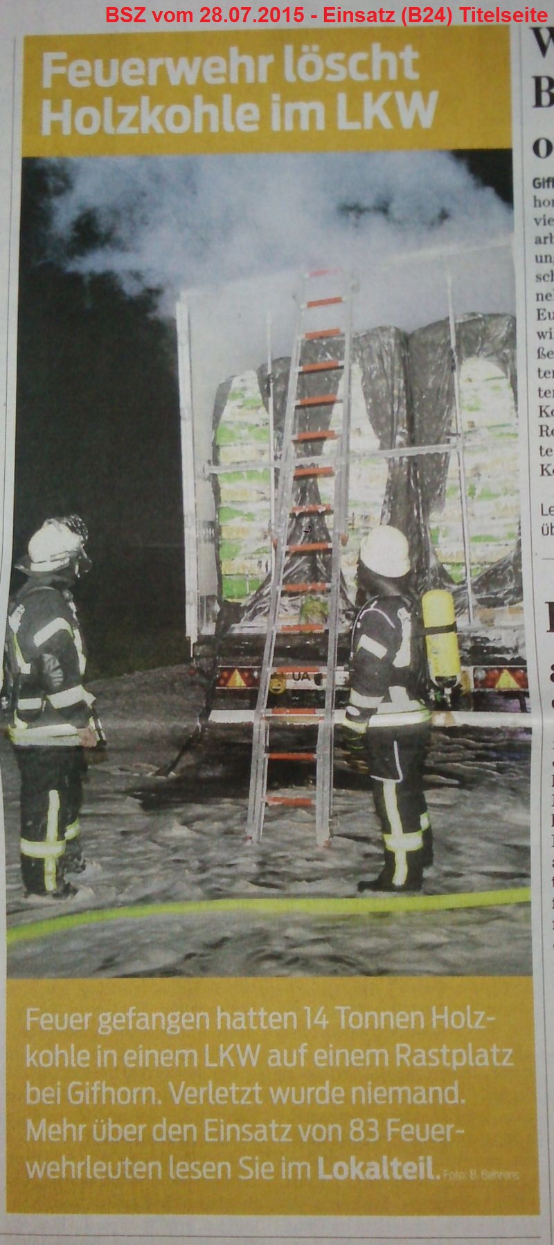 Feuerwehr löscht Holzkohle im LKW (Titelseite) |