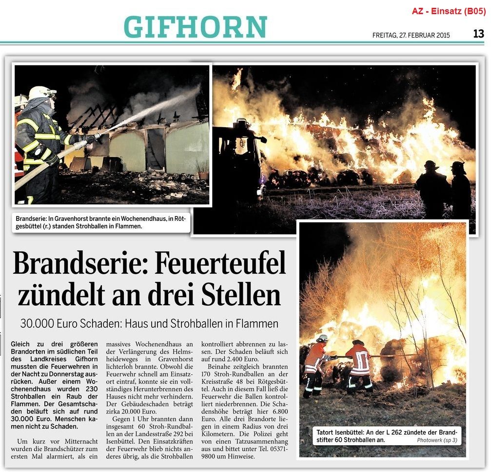 Brandserie: Feuerteufel zündelt an drei Stellen |