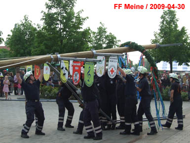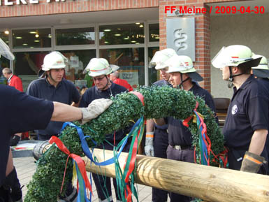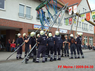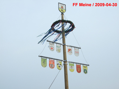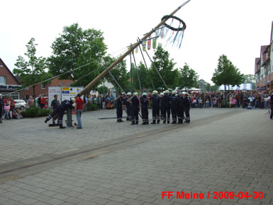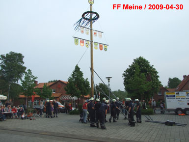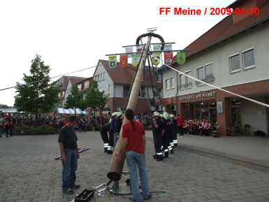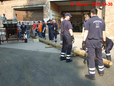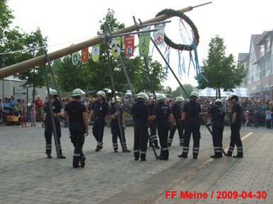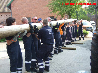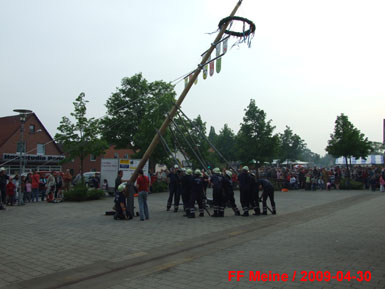 Am 30.04.2009 war es wieder soweit. Das alljährliche Maibaumaufstellen fand statt. Hierzu wurde der "neue" Baum am Bauhof der Gemeinde abgeholt und zum Marktplatz transportiert. Dort wurde er durch uns für das Aufstellen vorbereitet. Dann war wieder viel Muskelkraft gefordert um den Baum aufzustellen. Das Ausstellen lief wie immer reibungslos und wir konnten im Anschluss den Abend bei Musik und Bratwurst mit der Dorfbevölkerung ausklingen lassen.