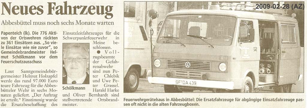 Der Feuerschutzausschuss der Samtgemeinde beschließt die Ersatzbeschaffung des ELW 1. |